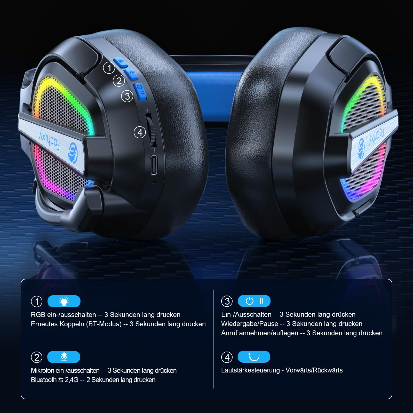 Fachixy FC200 Funk Gaming Headset 2.4G BT PS5 PC Switch 40h Mic+