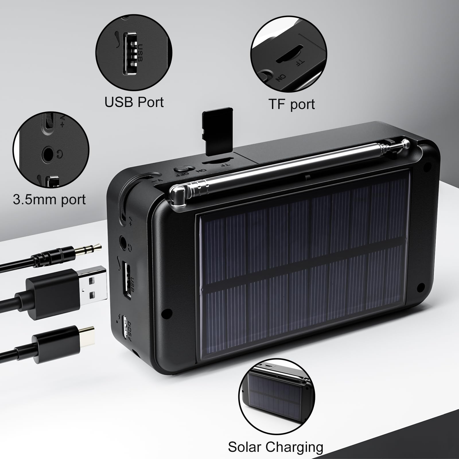 ⭐ 2-in-1 Stromversorgung – Akku, USB & Solar