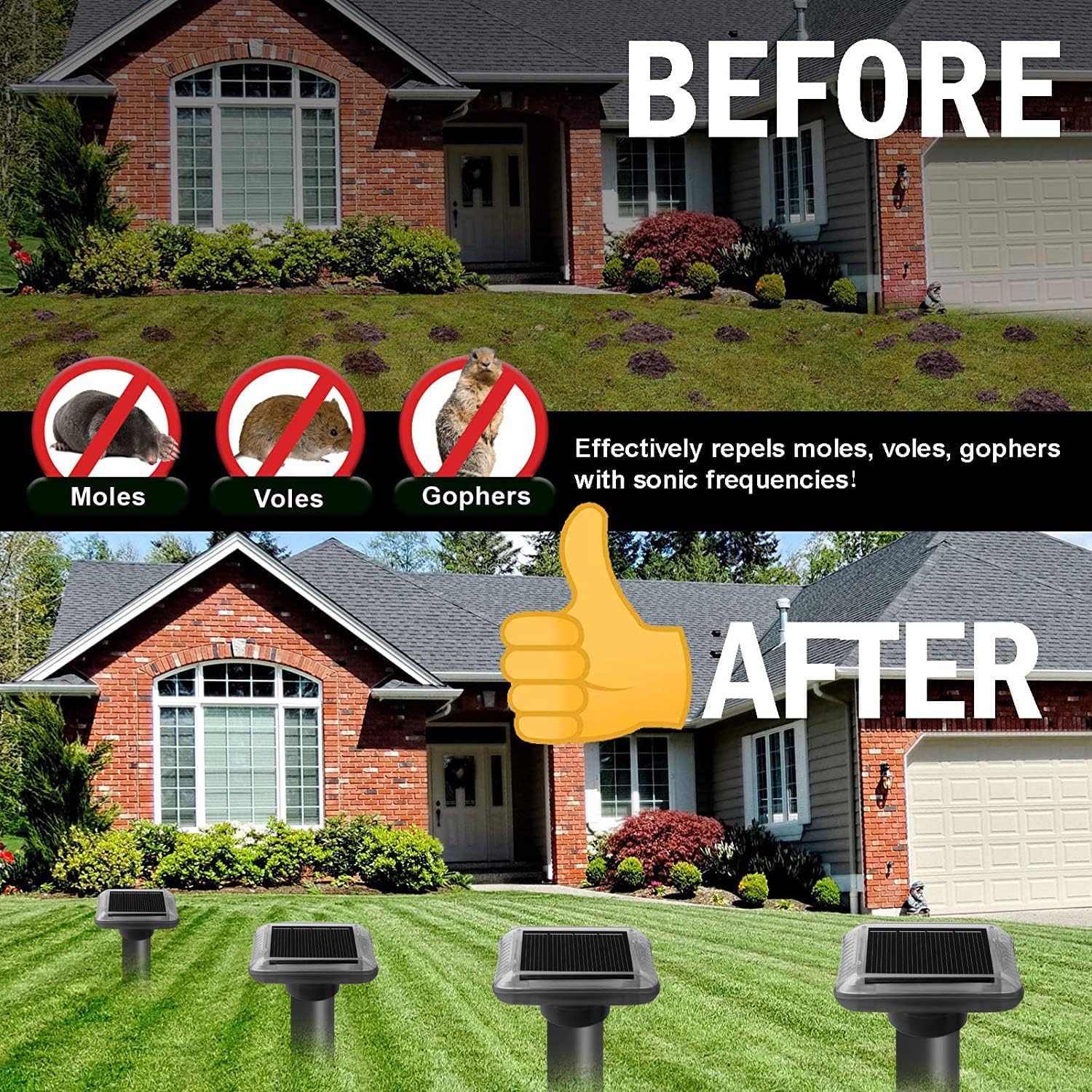 WUGEIN Solar Maulwurfvertreiber 4er Set Ultraschall IP66 Garten